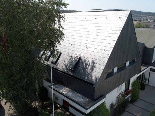 Auf der Suche nach einer schnellen, schönen, modernen und gleichzeitig natürlichen Lösung für das Problemdach stieß das Paar auf ein innovatives Schieferdach-System, das Rathscheck Schiefer erst vor wenigen Monaten in Deutschland eingeführt hat. Der Clou dabei: Es verbindet leistbare Eleganz und zeitlosen Chic mit effizienter Energieerzeugung. Die Solarstromerzeuger verstecken sich dabei nahezu unsichtbar zwischen rechteckigen Design-Steinen aus den Tiefen der Natur. Das Schiefer-Solar-Dach ist dabei so schnell installiert wie nie zuvor ein Dach aus Naturstein: Die rechteckigen Schiefer werden einfach in einem Trägergerüst aus Metallprofilen und wasserableitenden Verbindern fixiert.